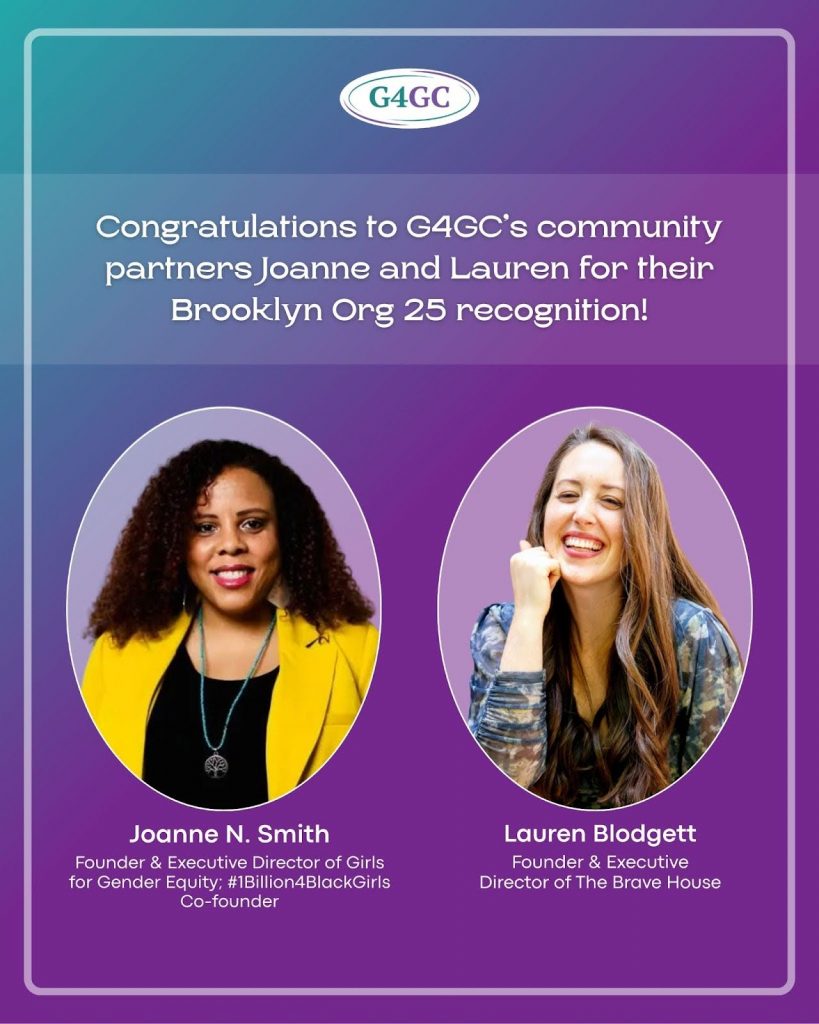 Brooklyn Org 25 celebrates the joy and determination of our communities. This year, they’re honoring the Founders and Executive Directors of two grantee partner organizations, #1Billion4BlackGirls Co-founder Joanne N. Smith from Girls for Gender Equity and Lauren Blodgett from The Brave House.