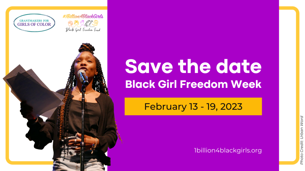 Make sure to save the dates February 13-19, 2023, for a week of virtual events elevating the activism, creativity, and joy of Black girls, femmes and gender-expansive youth. The week will end with our Black Girl Freedom Fund Manager Cidra Sebastien running a 60K trail race in Arizona to raise funds for organizations that support the brilliance and leadership of Black girls*.