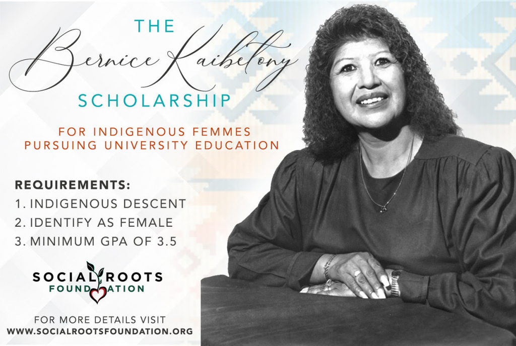 This scholarship opportunity was established as a tribute to the legacy of Bernice Kaibetony (mother of the ED and Founder of Social Roots Foundation) and her unwavering commitment to higher education for Indigenous women and femmes. Applications open March 18th here.