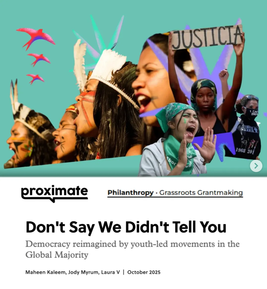 In a new Proximate piece written by G4GC’s Maheen Kaleem alongside Jody Myrum and Laura V., we explore how youth-led movements across the Global Majority are reimagining democracy from the ground up. “Youth are not waiting for seats at broken tables – they are building their own.”