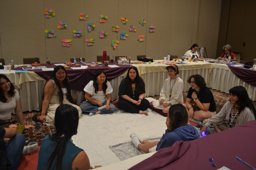 In June 2024, our New Songs Rising Fellows gathered in the Pueblo of Isleta to embark on the New Songs Rising Initiative’s first participatory grantmaking process, with a cohort of 10 young people, ages 13-24, from seven different Indigenous communities. The fellows built solidarity, refined their leadership skills, and showed commitment to Native and Globally-Indigenous girls and gender-expansive youth as they engaged in philanthropy.